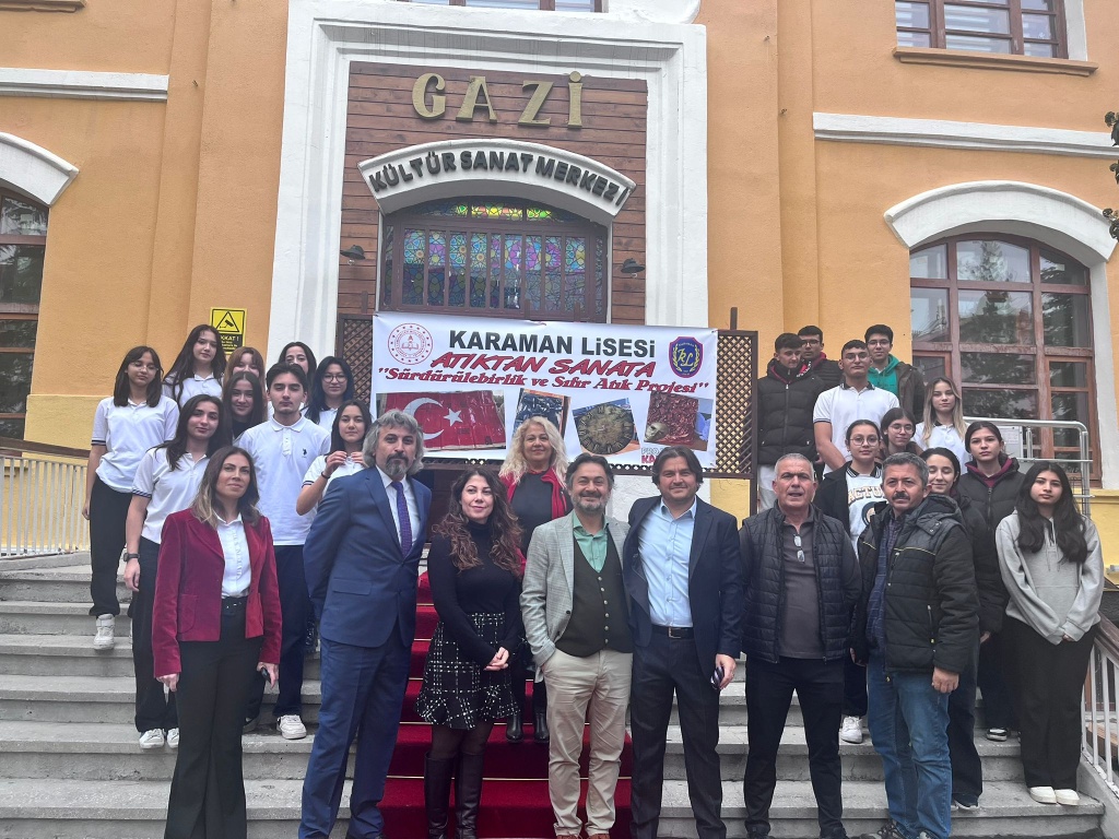 Karaman Lisesi öğrencileri tarafından, Görsel Sanatlar Öğretmenleri Demet Korkmaz ve Hakan Yerli'nin yürütücülüğünde gerçekleştirilen "Atıktan Sanata" projesi kapsamında hazırlanan 34 eser, Karaman Gazi Kültür Sanat Merkezi’nde vatandaşla buluştu. Sergiye Karaman Vali Yardımcısı Esengül Korkmaz Çiçekli, İl Kültür Ve Turizm Müdürü Murat Pekergin, İl Milli Eğitim Müdürü Mehmet Çalışkan, öğrenciler ve öğretmenler katıldı.