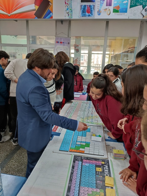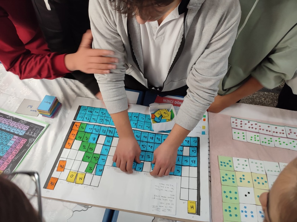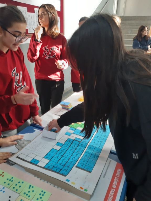 Okulumuz öğrencileri atomdan elemente, elementten periyodik tabloya giden yolculuğu maketlerle ve oyunlarla sergilediler. Renkli ve eğlenceli oyunlarla öğrenciler hem öğrendiler, hem eğlendiler. Kimya öğretmenlerimiz Rukiye Küçük ve Didem Cicim'e teşekkür ederiz.
